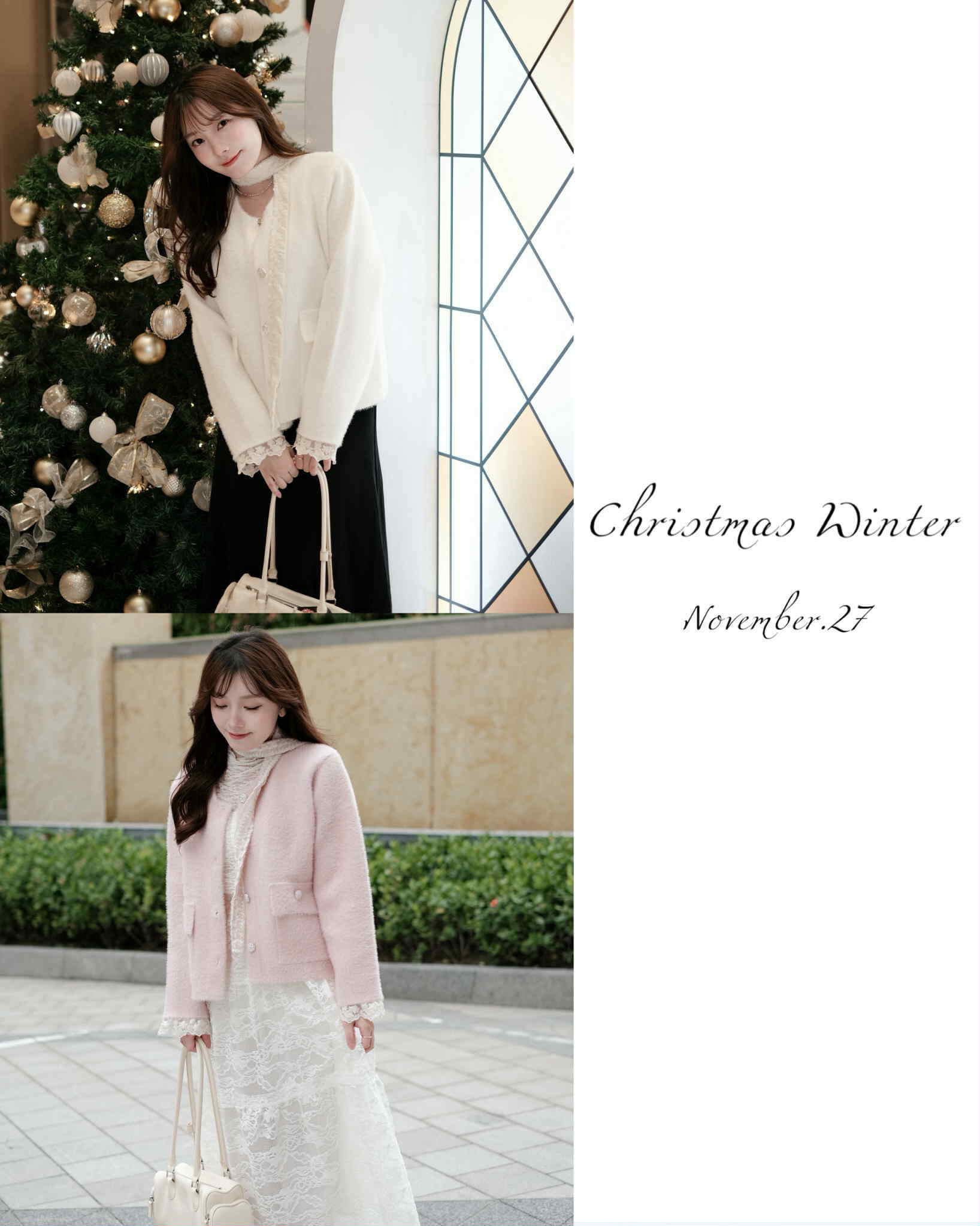預購- 蕾絲綁帶珍珠小香外套 米白